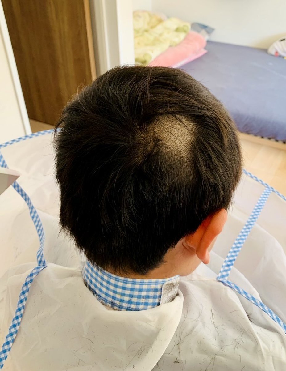 本職美容師ですが、これは… 場所がトップに近すぎてツーブロも無理だし。せめて前部分は少し長めにして、スポーツ刈りかな。11歳らしいし、見た目気にする年齢だよね💦先生に説明して、2ヶ月ほど授業中も帽子被らせてもらいたいね💦 x.com/hakkyuu_shisan…